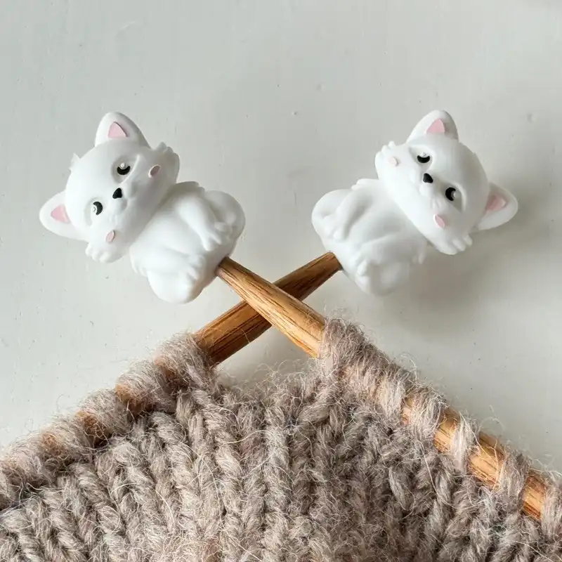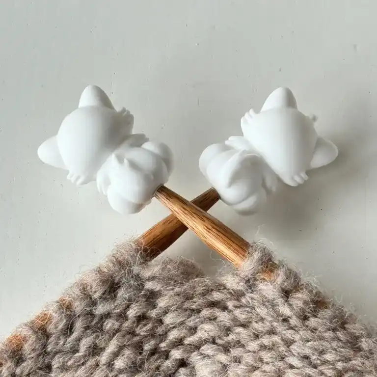 Maskestoppere kan anvendes til forskellige typer af strikkepinde – både strømpepinde og rundpinde.