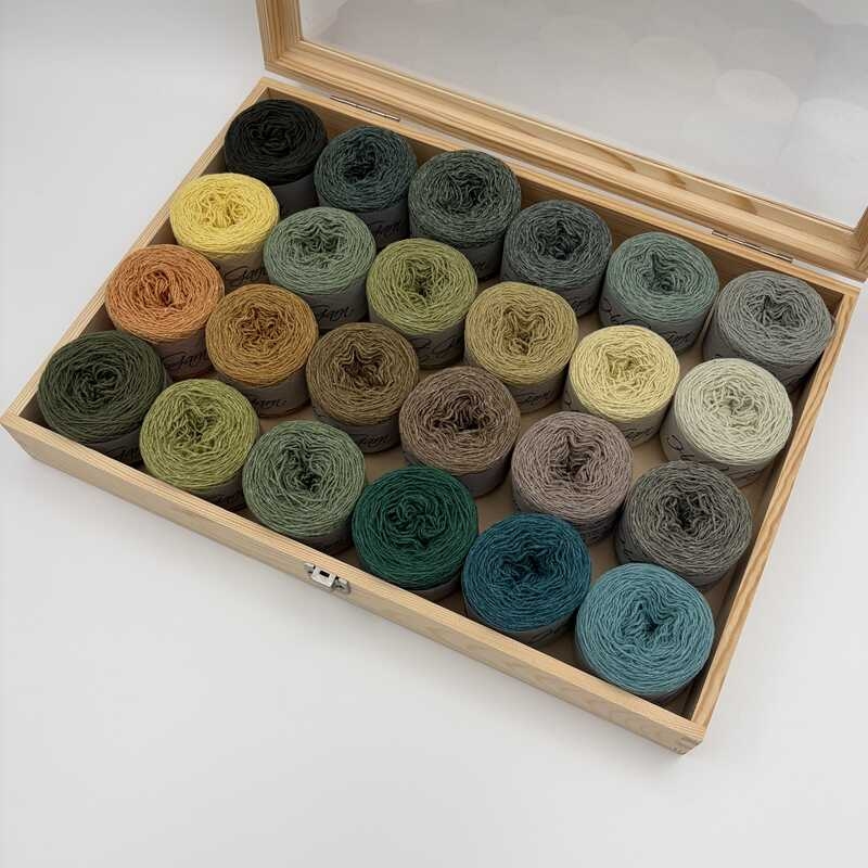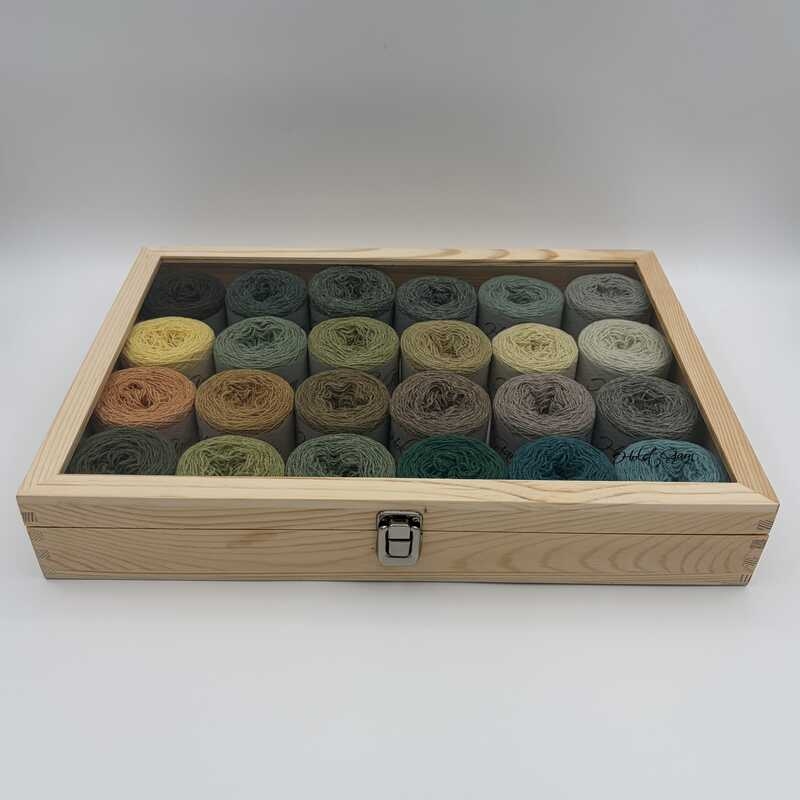 Each Dream Box includes 24 × 25 g skeins in beautifully coordinated shades, delivered in a wooden box stamped with the Holst Garn logo - just as inspiring as what’s inside.