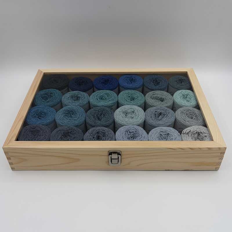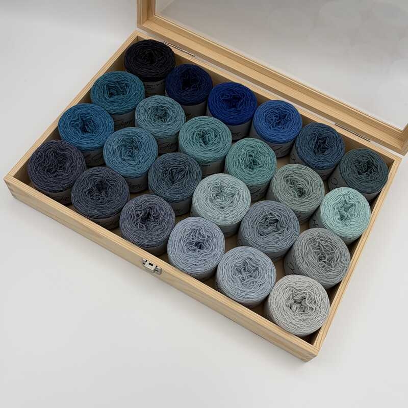 Each Dream Box includes 24 × 25 g skeins in beautifully coordinated shades, delivered in a wooden box stamped with the Holst Garn logo - just as inspiring as what’s inside.