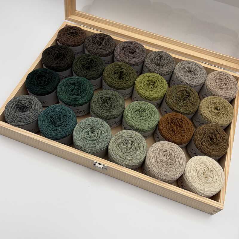 Each Dream Box includes 24 × 25 g skeins in beautifully coordinated shades, delivered in a wooden box stamped with the Holst Garn logo - just as inspiring as what’s inside.