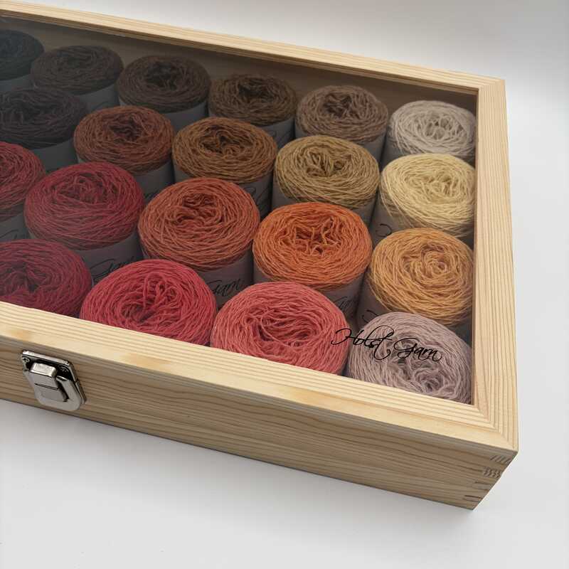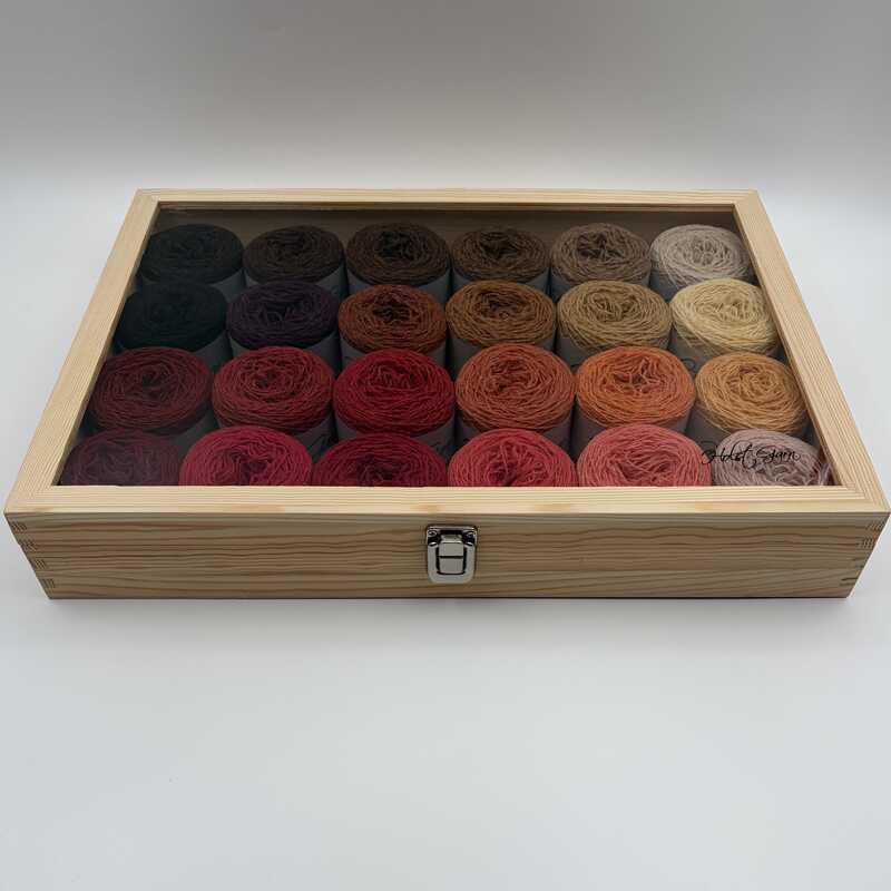 Each Dream Box includes 24 × 25 g skeins in beautifully coordinated shades, delivered in a wooden box stamped with the Holst Garn logo - just as inspiring as what’s inside.