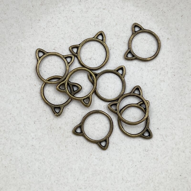Antik bronzefarvet markør-ring i metal formet som en kat.